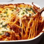 A comforting and nostalgic baked spaghetti dish that’s perfect for busy weeknights or family gatherings, featuring gooey cheese, tender pasta, and savory meat sauce.