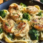A comforting and indulgent creamy garlic parmesan dish featuring tender chicken, cheese tortellini, and fresh broccoli, perfect for weeknight dinners.