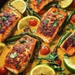 A visually stunning and flavorful One-Pan Coconut Curry Salmon dish that combines savory garlic butter with comforting coconut curry, perfect for busy weeknights.