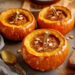 Prepare the Pumpkins: If you’re using small pumpkins for serving, hollow them out carefully. Place them in a baking dish and pour the custard mixture into each pumpkin until they are filled, ensuring not to overfill.