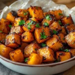 Place the baking sheet in the preheated oven and roast for 25-30 minutes, stirring halfway through: As they roast, you’ll hear the soft sizzle of sweetness and see the transformation from vivid orange to a delectable, caramelized exterior.