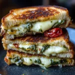 The Sun-Dried Tomato Grilled Cheese with Gouda & Basil Pesto is a delightful sandwich that transforms the classic comfort food into something extraordinary. Imagine crispy, golden-brown sourdough bread cradling ooey-gooey Gouda cheese, the tangy bite of sun-dried tomatoes, and the vibrant, aromatic basil pesto. This recipe is not just a meal; it’s a culinary experience that can evoke nostalgia while satisfying your current cravings. Whether you’re enjoying this for lunch with friends or as a quick dinner at home, it’s a dish worth every effort to make.